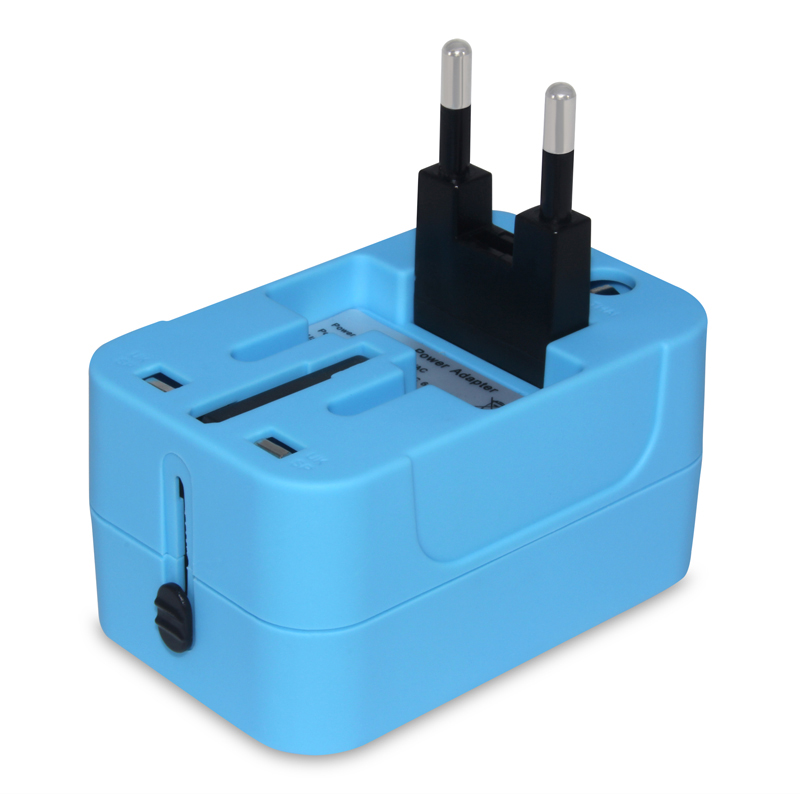 ●品名:双USB多功能转换插座●型号:D125●尺寸:58x46x75mm●材质:外壳阻燃塑料,磷青铜●颜色:蓝色●额定电压:110v-250v●额定电流:6A●净量:95 G●毛重:110 G●用途:旅行社,会务,会展公司商务出国出境旅客需带品